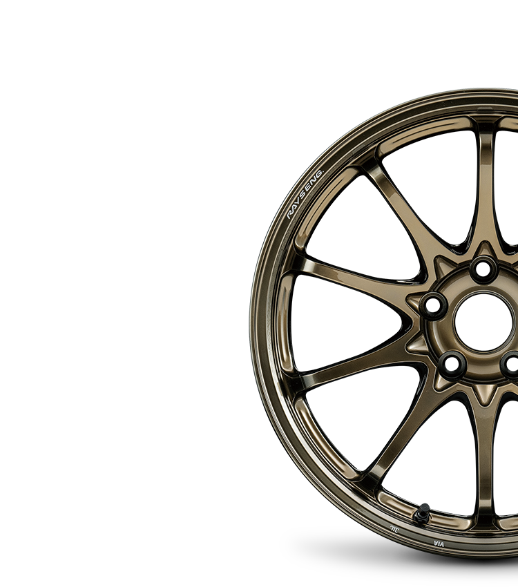 All of the aluminum wheels listed on this website comply with the Technical Standards for Automotive Light Alloy Disk Wheels (JWL for passenger cars and JWL-T for trucks and buses). Furthermore, having passed the rigorous tests conducted by the Automotive Light Alloy Wheel Testing Council, these wheels also carry the VIA mark. However, unless the company is found to be liable for compensation under the law, Rays accepts no responsibility and offers no warranty in the event of accidents or deformed or cracked wheels caused by any of the following circumstances: driving the car in places where motor vehicles don't usually go; driving the car on a racing circuit; using the car to race in a rally or for similar purposes that will exceed the limits on its use; by modifying the car illegally; and by failing to perform everyday maintenance checks that would have identified the defect responsible for the issue.